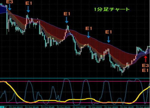 5分足のトレンドを見ながら1分足でトレード。